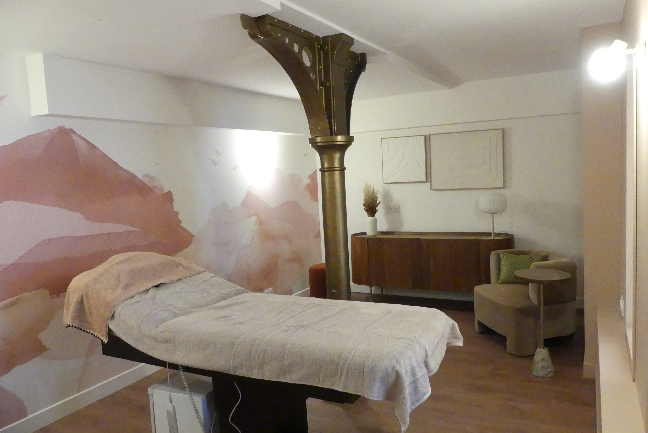 Les beaux piliers historiques sont toujours là mais les salles d’archives ont été remplacées par des cabines de massages et un vaste espace d’accueil cosy. Rue Berthelot, une partie de l’ancien tribunal de commerce de Tours est devenue un institut de beauté avec le déménagement d’Un Moment à Soi qui était situé tout près Rue Jules Favre.