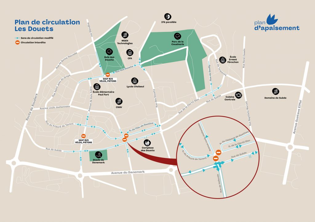 C’était les prémices de changements plus vastes qui vont entrer en vigueur à partir de ce lundi 21 octobre. Dans le cadre de son « plan d’apaisement » de la circulation, la ville de Tours a repensé l’organisation du trafic dans le quartier des Douets. Un plan qu’elle dit réalisé en concertation avec l’association des riverains Les Douets de Tours, souvent force de propositions dans ce domaine. Une dizaine de réunions ont ainsi été organisées pour préparer l’application des mesures.