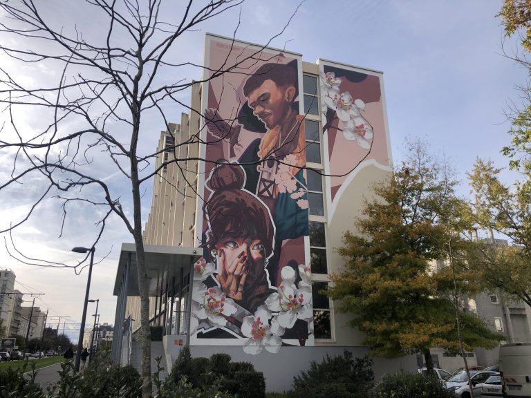 - Sur la façade de l’immeuble situé au 10 avenue Charles de Gaulle par Koye en collaboration avec Enora