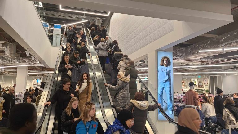 Signe qu’il y avait de l’attente, les premiers clients ont commencé à faire la queue vers 8h. 1h30 plus tard, on comptait 300 personnes dans la file d’attente. Et à 10h30, encore 300 autres qui patientaient car le magasin affichait complet. Il y en avait jusqu’à la fontaine. Occasion rêvée de se faire de la pub pour les autres boutiques du site : plusieurs d’entre elles ont diffusé des flyers promotionnels dans la foule. De leur côté, les équipes de Primark offraient de grands cabas.