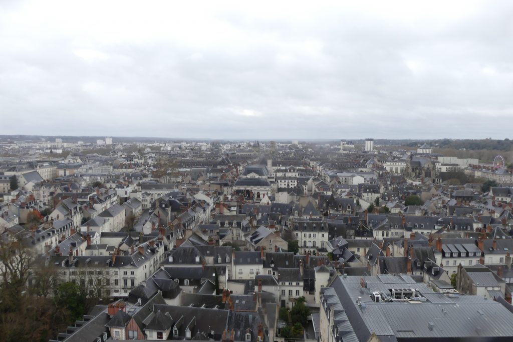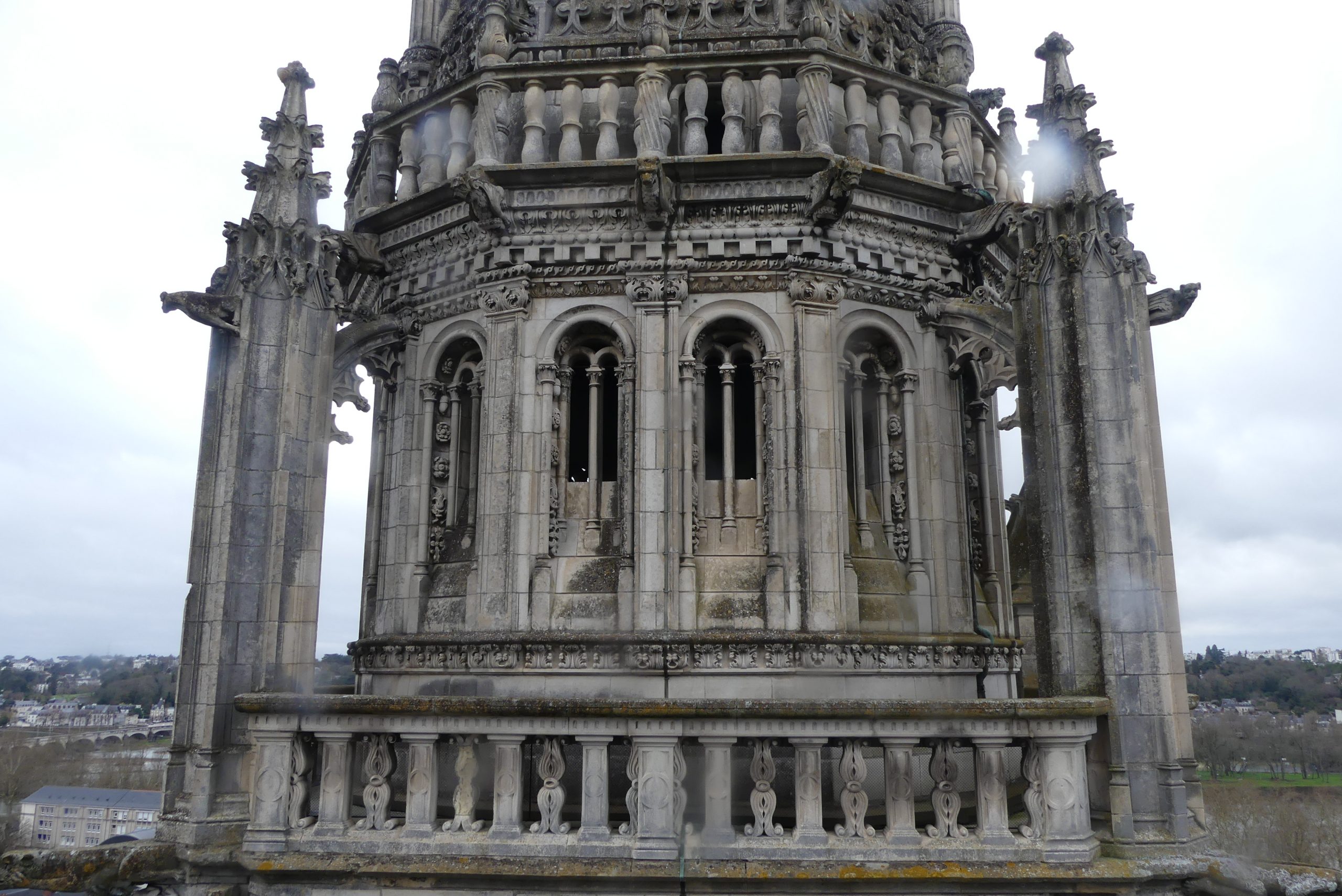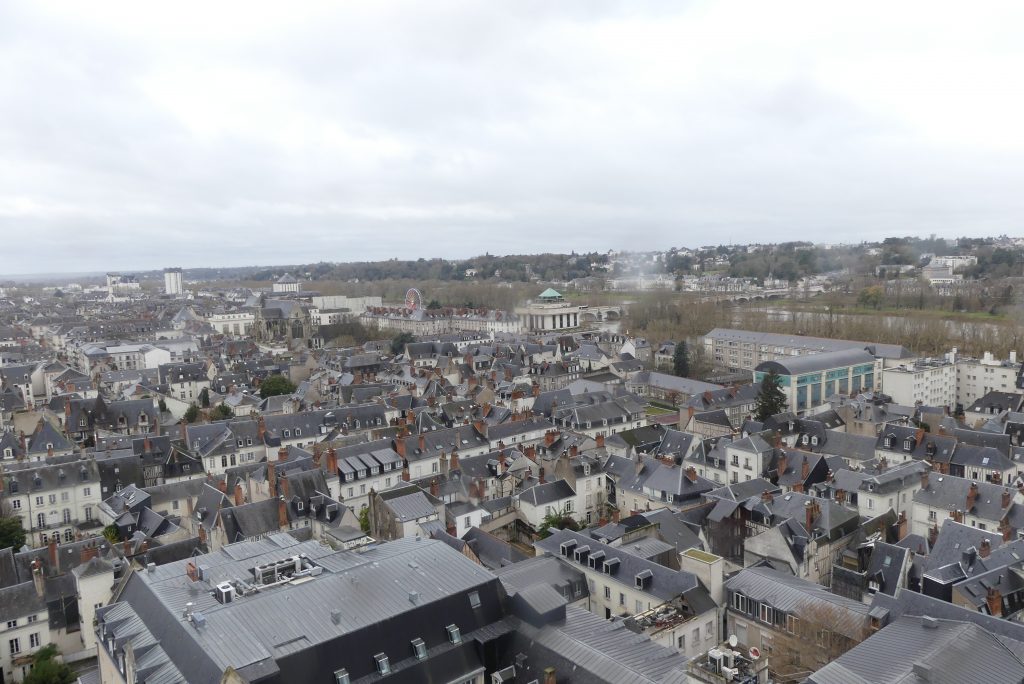 Enfin, à près de 70m de haut, on se promène sur la coursive de la tour nord qui permet d’observer la courbe de l’ancien amphithéâtre romain, la gare et l’Hôtel de Ville de l’architecte Victor Laloux, la bibliothèque centrale, la Loire ou encore la Basilique Saint-Martin. Et dans l’escalier en colimaçon, on passe une tête pour découvrir l’une des 4 cloches du monument qui sonne chaque quart d’heure.