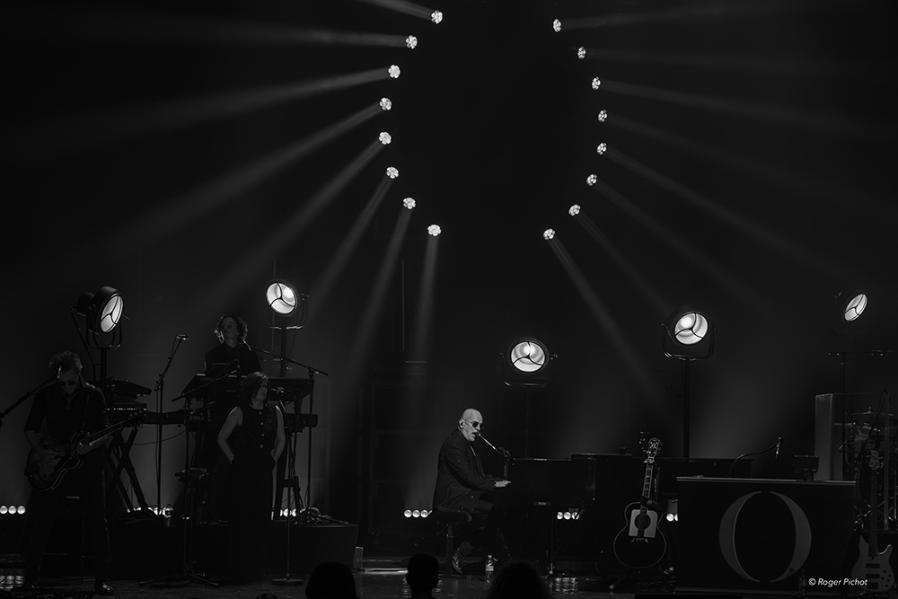 Accompagné par un orchestre de sept musiciens dont le saxophoniste Max Pinto, seul au piano, ou à la guitare, Pascal Obispo régale le public avec ses nouvelles chansons, et les titres qui ont fait son succès comme ceux composés pour Natacha St-Pier avec Tu trouveras ou Zen pour Zazie, il aura une pensée émouvante pour Daniel Levi lorsqu’il interprètera L’Envie d’aimer (des Dix Commandements dont il a composé la musique).