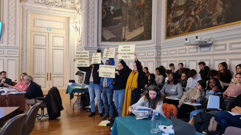La présence d’une partie des musiciens n’avait rien du hasard. En effet c’est ce jour-là où les élus du conseil municipal débattaient des orientations budgétaires de la ville de Tours de l’année 2025. Or depuis deux ans c’est bien sur une question financière que la gronde sociale est apparue au sein des musiciens.