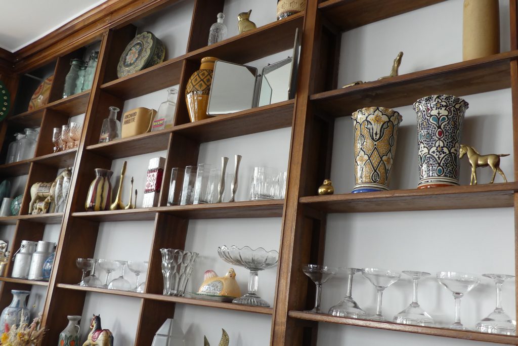 Les deux « colocataires » ont donc chiné un local, déniché sur Le Bon Coin et qui correspond parfaitement à leur recherche. « Aux Prébendes il y a une clientèle pour ce type de commerce » assurent-elles. Ouvertes dans un premier temps les mardis, jeudis et vendredis + un samedi sur deux, elles présentent des objets « que l’on pourrait avoir chez nous ». Un éventail de l’histoire du XXe siècle : des assiettes, un petit cheval à bascule, de très beaux plats pour l’apéritif, des globes terrestres remontant jusqu’aux années 30 ou quelques vases très élégants.