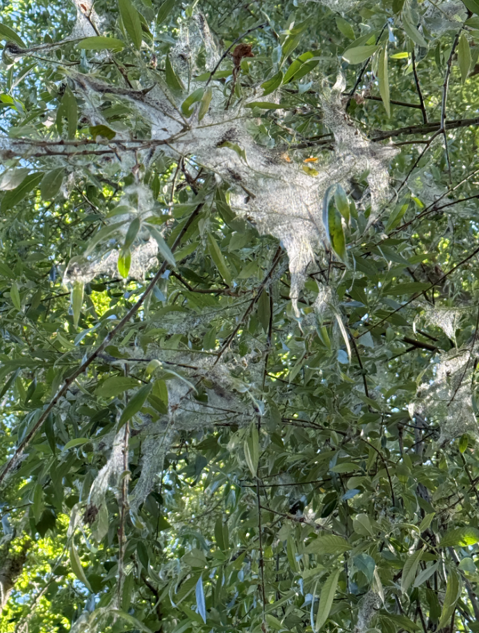 Justement, ces derniers temps, un papillon pose question à Tours. La municipalité explique que des habitants se sont intrigués voire inquiétés de découvrir des voiles blancs dans les arbres, comme si on avait accroché du coton dans les branches ou recouvert les troncs. C’est notamment le cas sur les bords de Loire comme le montre la photo ci-dessous, transmise par la ville.