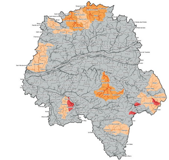Plusieurs cours d’eau passent donc en vigilance renforcée dès à présent : la Dême, l’Escotais, l’Echandon et le ruisseau de Chantereine. Le ruisseau de Parçay, de Roche, de la Coulée et de Rigny sont en crise, tandis que le reste du département est simplement en vigilance. Le détail dans la carte ci-dessous (plus c’est rouge, plus la situation est critique).