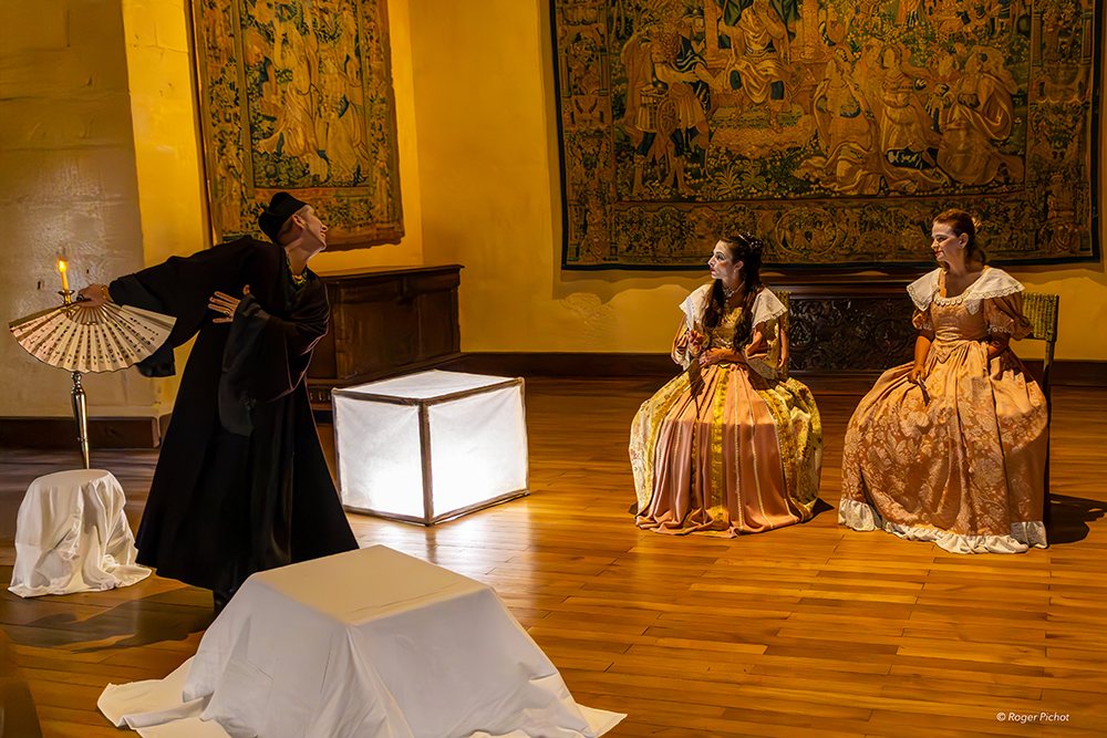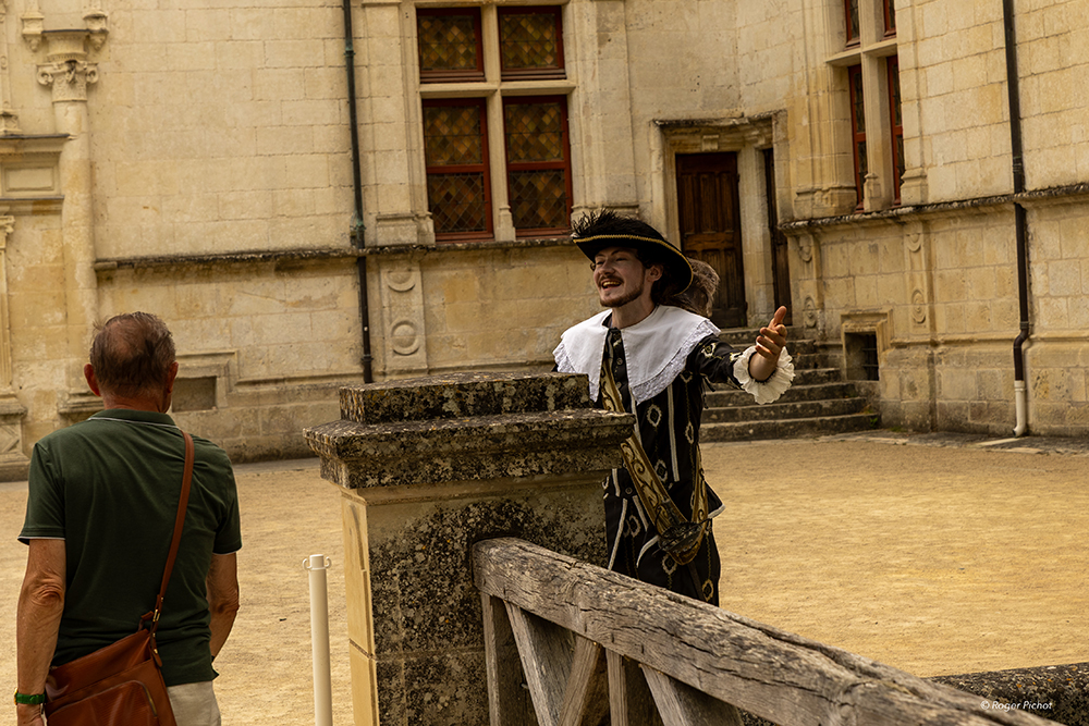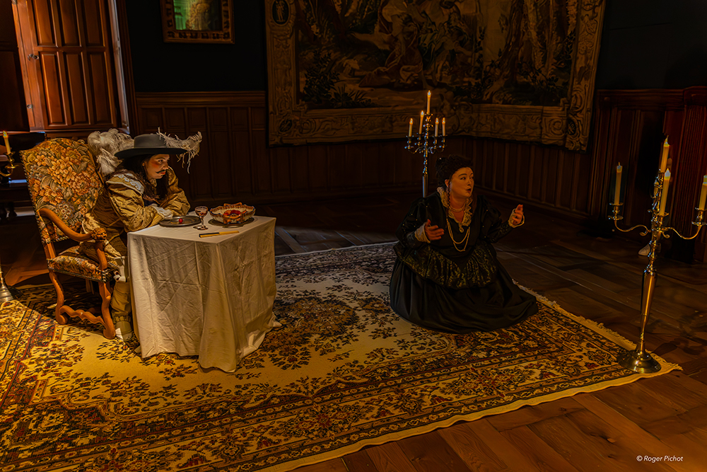 Ce scénario d’1h10 se déploie au fil des salles du château où l’on déambule au cours de la soirée. Clairement, de 19h à 22h30 le monument se transforme en un véritable théâtre d’intrigues et de complots. « Vous êtes invités à revivre une journée historique, riche en tension et en rebondissements » explique la présentation de La Conjuration d’Azay. Dont Roger Pichot a pu suivre une représentation en nocturne, au cours de laquelle on découvre également un formidable habillage signé Lumières de Verre.