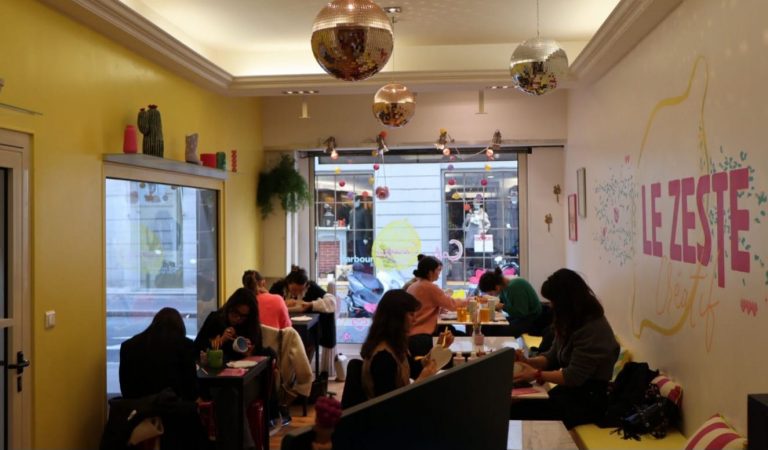 Grâce à un décor solaire et acidulé et une bonne playlist en fond sonore, l’ambiance se veut conviviale, relaxante et propice à la conversation. Tout est fait pour nous pousser à lâcher notre téléphone pendant deux heures. “On a surtout voulu renouer le contact avec l’humain, créer un commerce de proximité et d’échange où les personnes peuvent laisser libre cours à leur créativité et ouvrir tout le champ des possibles”, raconte Maïda, co-créatrice du Zeste Créatif.