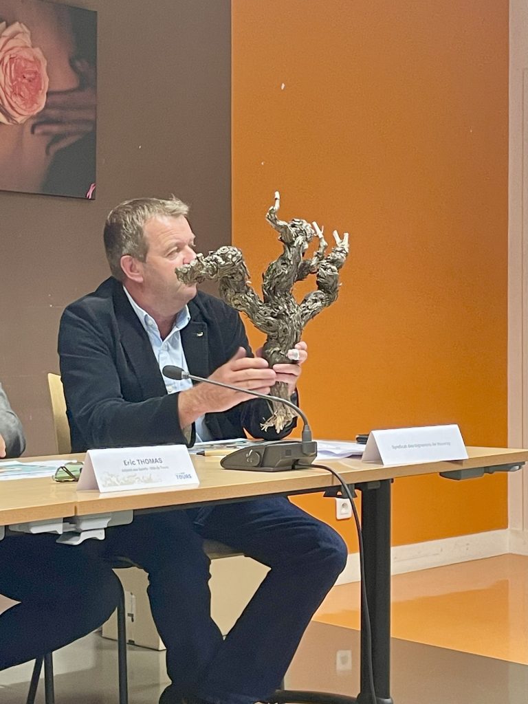 Autre nouveauté de cette 119e course Paris-Tours : le Syndicat des vignerons de Vouvray (partenaire de l’événement) a annoncé la création d’un tout nouveau trophée. Celui-ci sera réalisé à partir d’un véritable cep de vigne. “Ce cep représente le V de la victoire mais aussi, il représente la pérennité, la persévérance, c’est donc un beau symbole”, explique Denis Breussin, président du syndicat récemment élu.