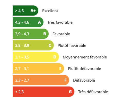 Cette enquête se base sur des questions construites autour de 5 sujets : la sécurité, le confort du trajet, (entretien, signalisation, etc.), les efforts de la commune, l’équipement en termes de stationnement et services essentiels (réparation, entretien, etc.) et le ressenti général. Avec l’ensemble des réponses, une note est par la suite calculée pour chaque commune allant de A+ (excellent) à G (très défavorable), à la manière du Nutri-score ou de la classe énergie.
