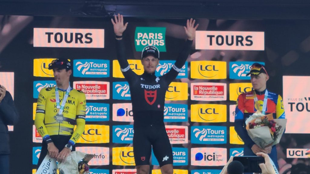 Mais les deux leaders se sont regardés sous la bannière du dernier kilomètre et ont trop coupé leur effort, tandis qu’à l’arrière, le groupe des 4 poursuivants n’en attendait pas tant pour revenir sur eux. Finalement dans la dernière ligne droite, constituée pour la première fois par le boulevard Béranger, c’est Matteo Trentin qui s’est montré le plus rapide au sprint devant le français Christophe Laporte et Albert Withen Philipsen (Lidl-Trek). Le coéquipier de Julian Alaphilippe au sein de l’équipe Tudor, remporte ainsi son 3e Paris-Tours, Lapeira et Gruel devant se consoler seulement de la 04e et 05e places. Frustrant.