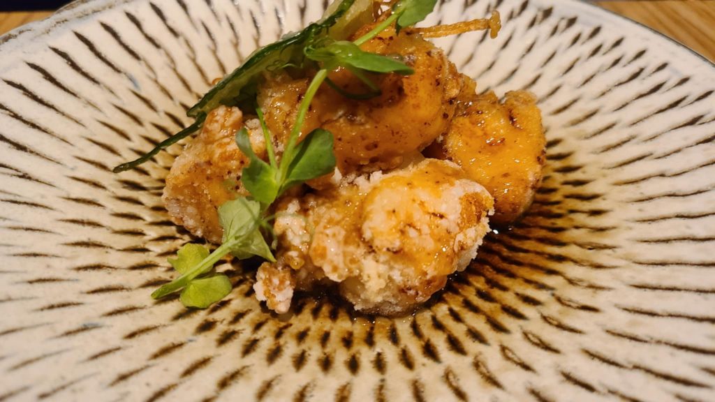 S’il y a bien quelques sashimis, une soupe (agrémentée de coques, sublime) ou du mochi, le reste de la carte est dans la découverte. Coup de cœur par exemple pour les croquettes potimarron, canard, pomme de terre, sauce katsu ou ces Saint-Jacques pochées mi cuites. Sans parler de l’huître avec tartare de veau. Fabuleux.