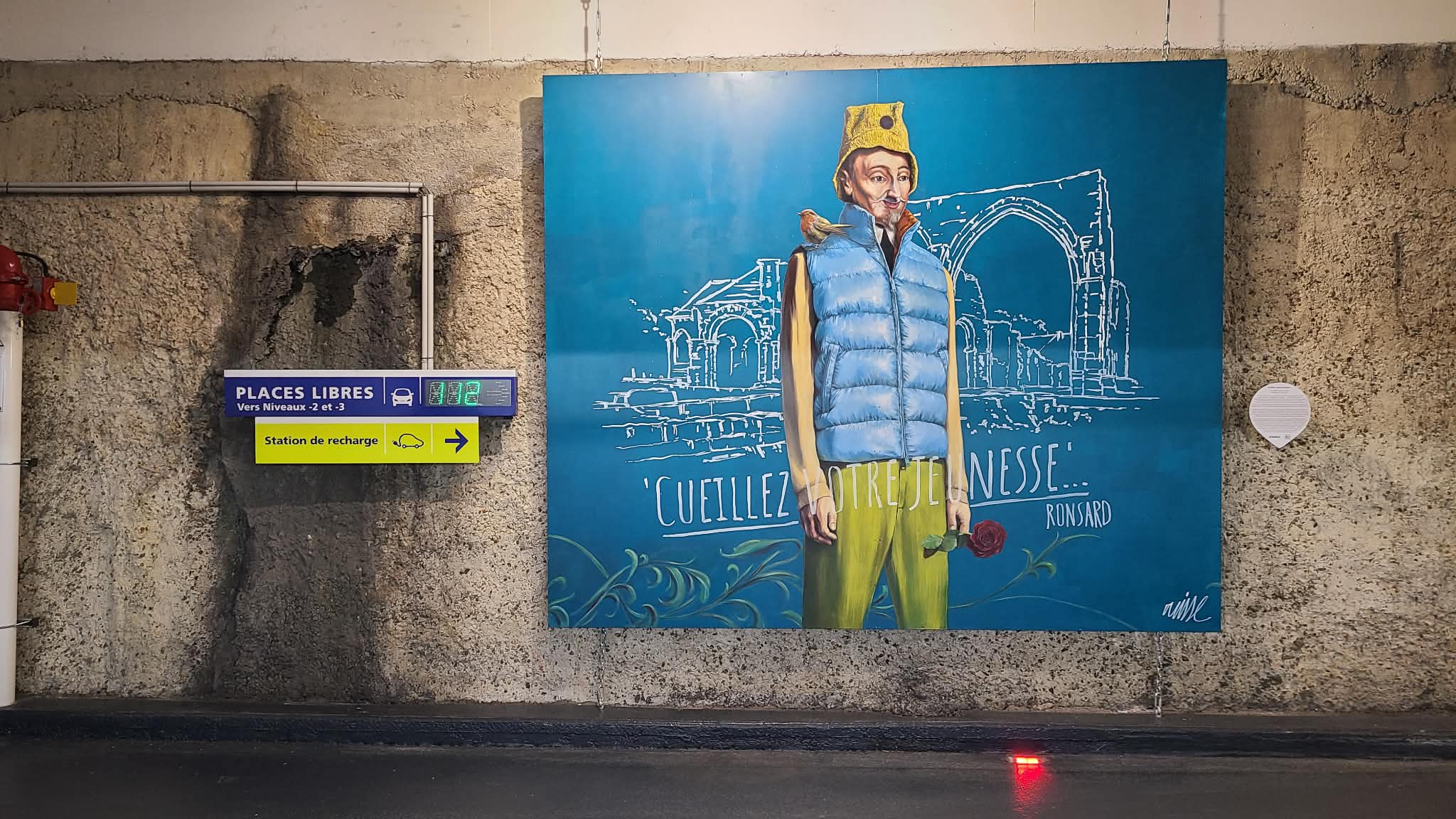 Ce n’est pas la première fois qu’un parking souterrain tourangeau fait ainsi confiance à des artistes de street art pour égayer un peu son ambiance. Vous pouvez ainsi découvrir d’autres œuvres dans le parking Gambetta, près du Monoprix de la Rue Nationale.