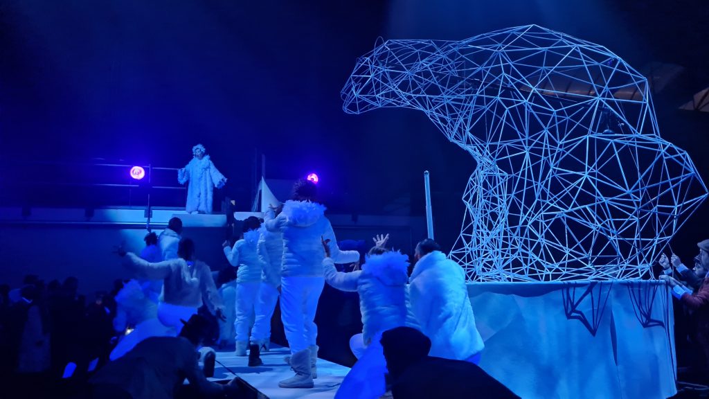 Comme à l’accoutumée, c’était aussi l’occasion de montrer un extrait d’un de leurs spectacles. Cette année le choix s’est porté sur l’Ours Polaire du spectacle « Banquise à la dérive ».