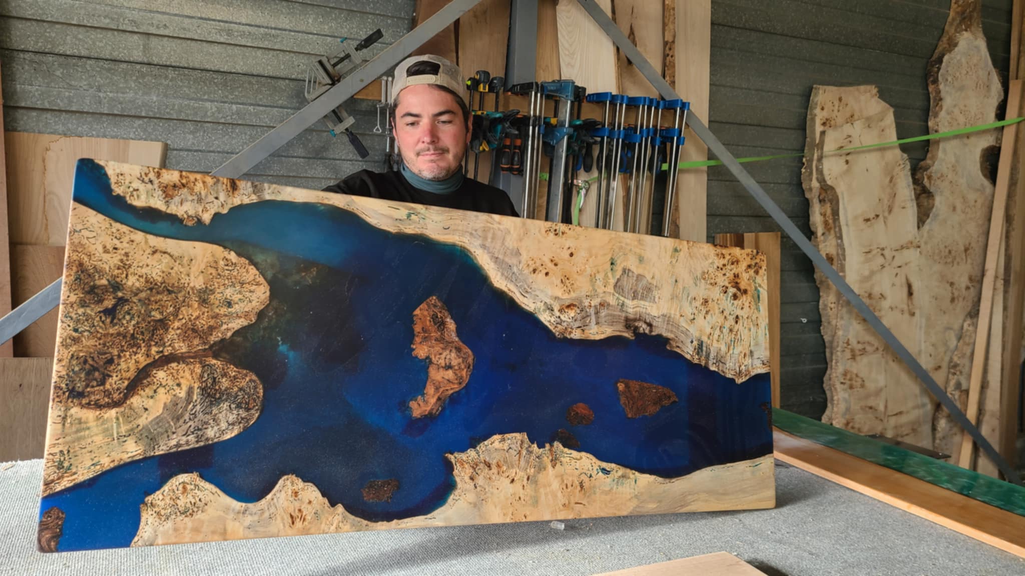 Précisons que le menuisier fabricant ne mise pas tout sur la résine : il peut aussi fabriquer des meubles tout en bois (chêne, noyer, orme…) ou rénover d’anciens modèles. Il vient surtout de lancer une activité d’ateliers via Wecandoo : 80€ les 3h chaque vendredi pour créer sa planche à découper, ou 450€ pour confectionner sa propre table basse en résine sur une journée et demi.